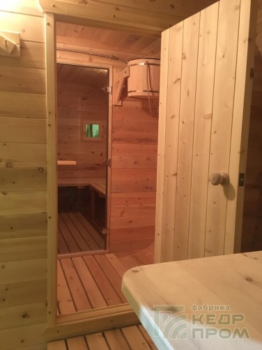 Баня-бочка из кедра квадратная 5,5м со входом сбоку №288