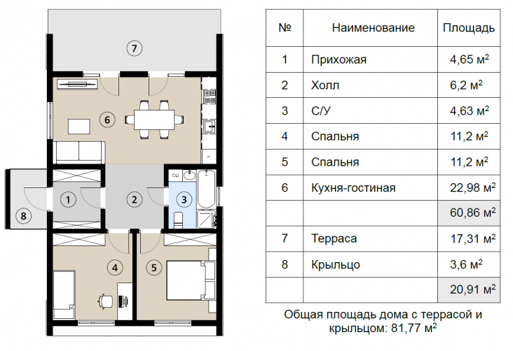 • Общая площадь 60 м2